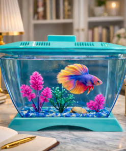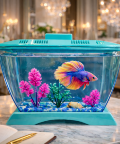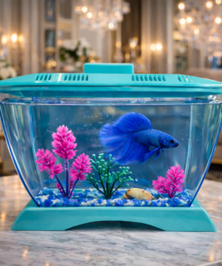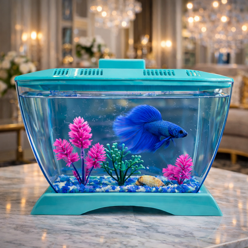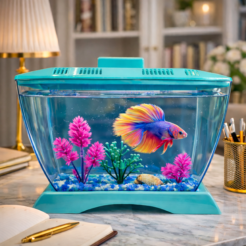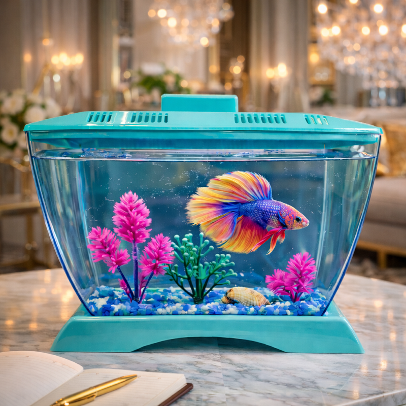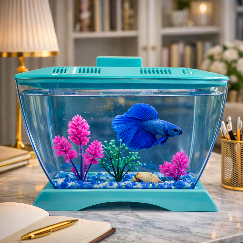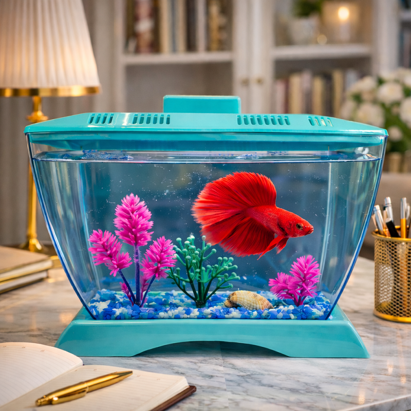 Mini Aquarium with LED Light + Fish + Stone + Food + Tree